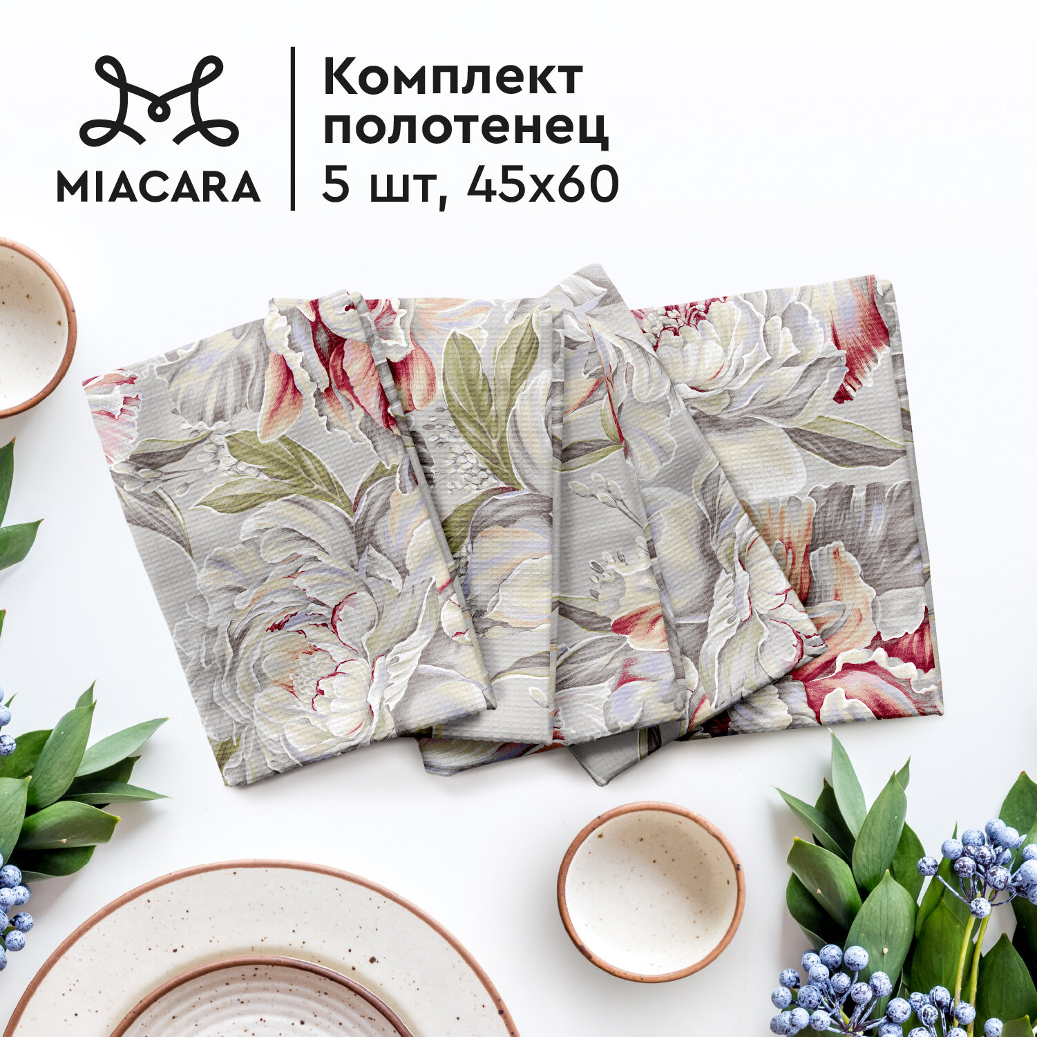 Набор вафельных полотенец 45х60 (5 шт.) "Mia Cara" рис 30565-1 Fiorita