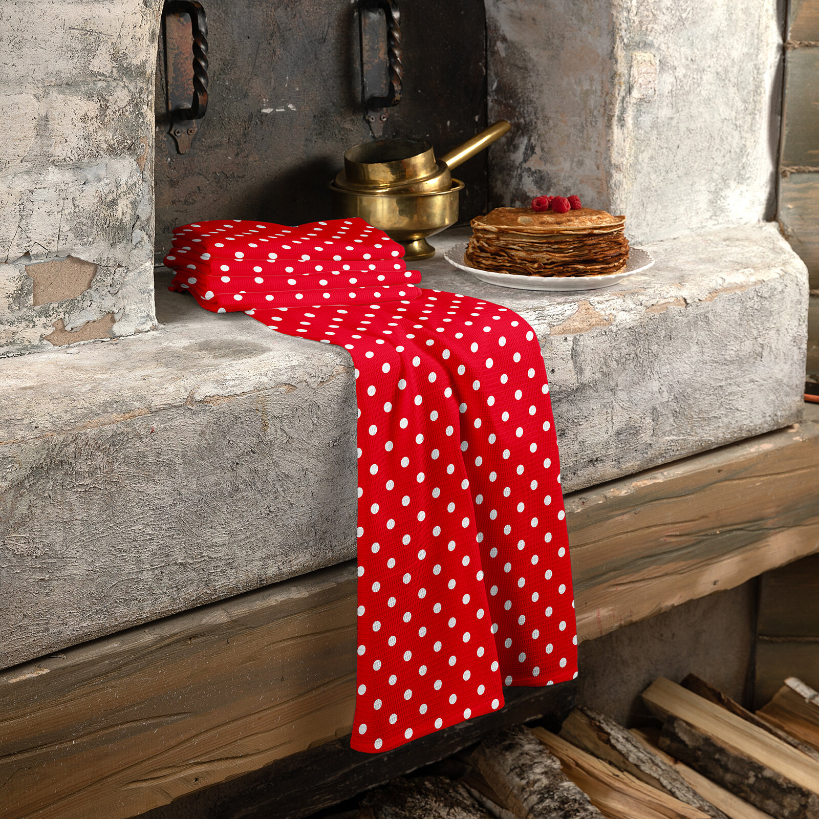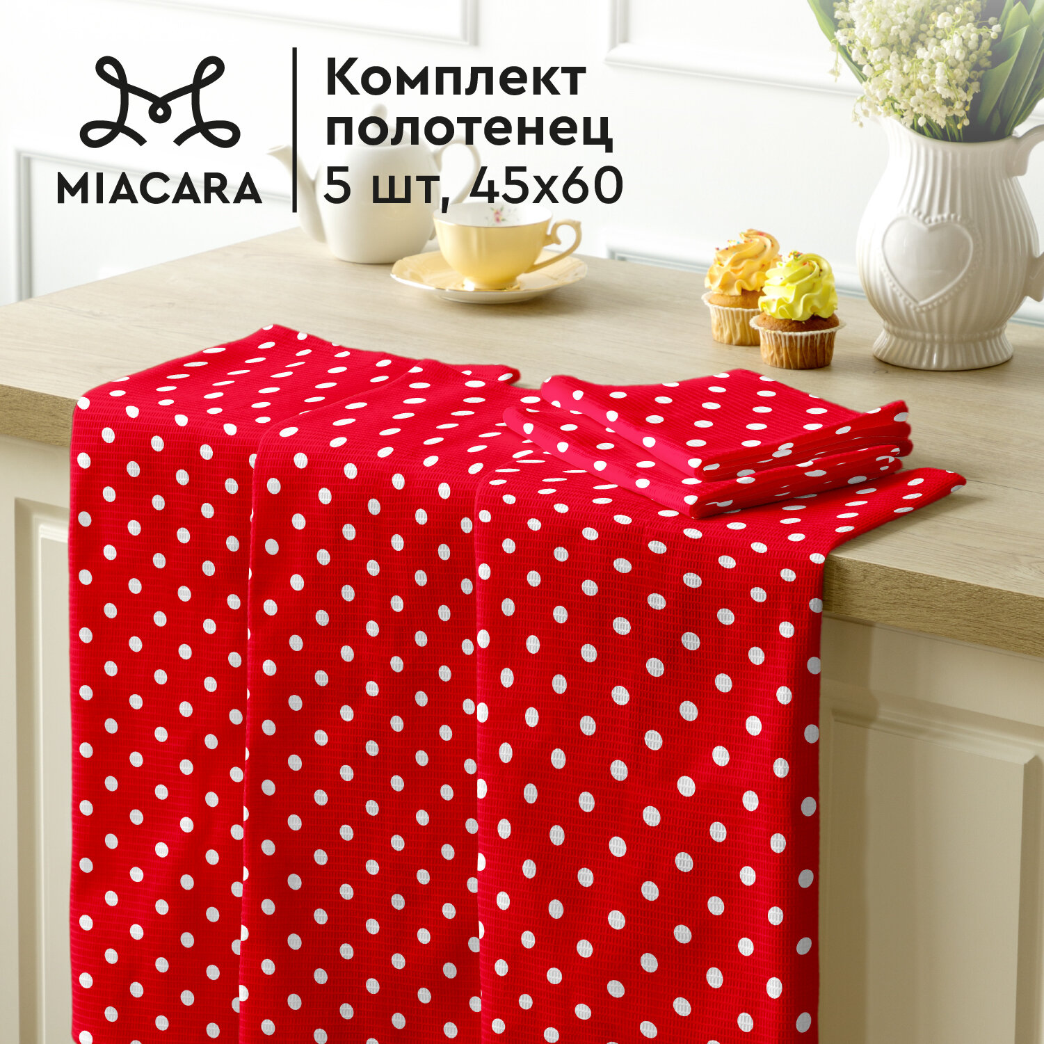 Купить Комплект вафельных полотенец 45х60 (5 шт.) "Mia Cara" рис 30394-7 Горох красный