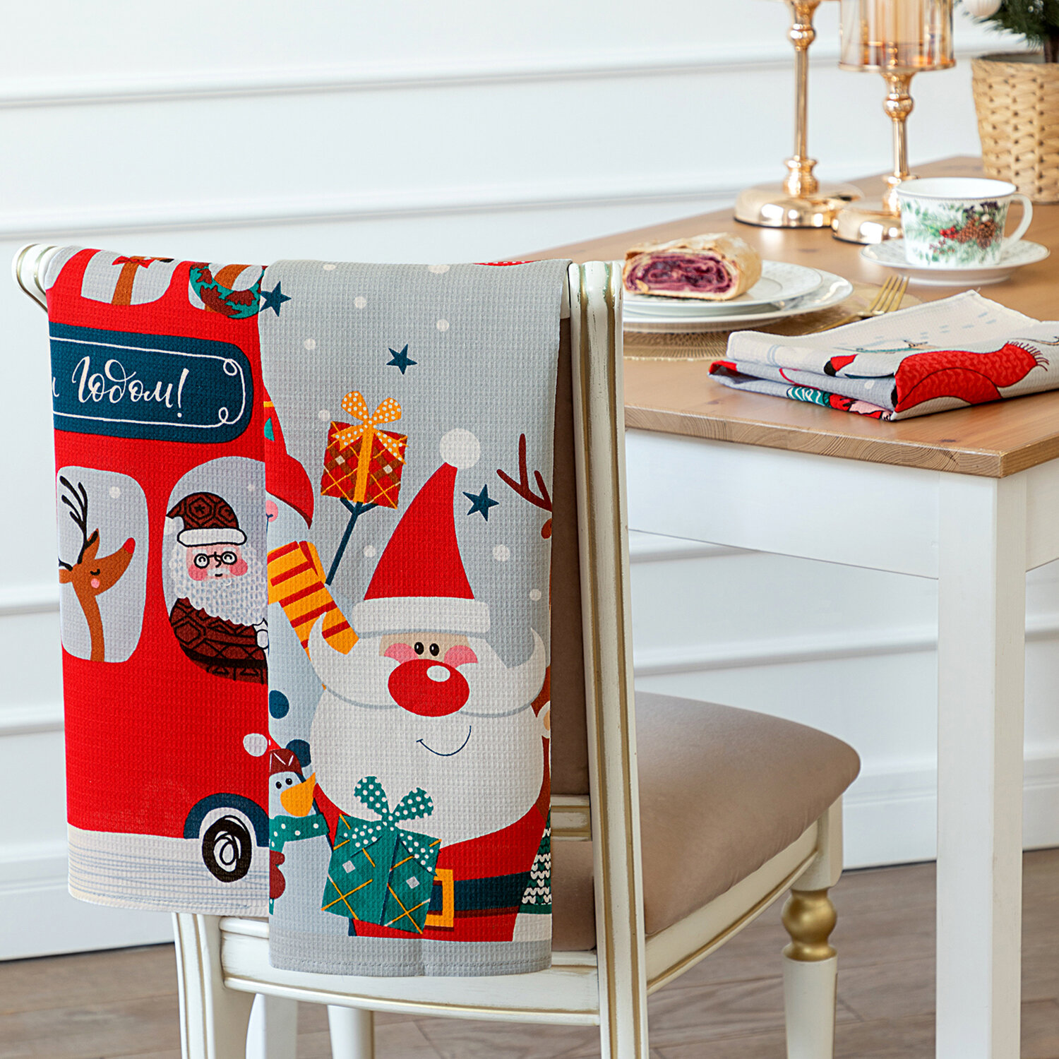 Комплект вафельных полотенец 45х60 (3 шт.) "Mia Cara" рис 30440-1 Новогодние эльфы