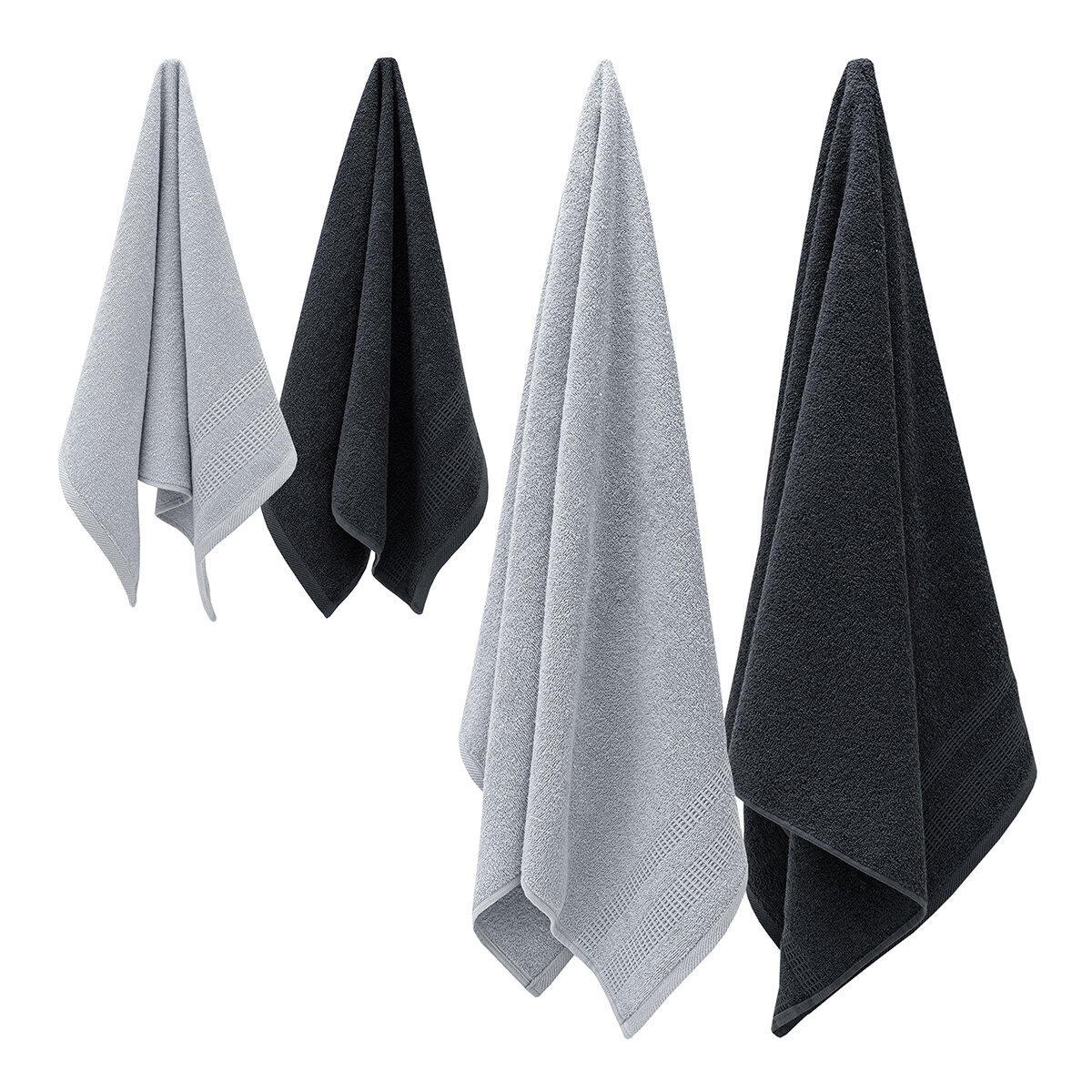 Купить Большой набор махровых полотенец для всей семьи Памир - 4 штуки (2 больших 70*130, 2 средних 50*80) серый/ хлопок / подарок