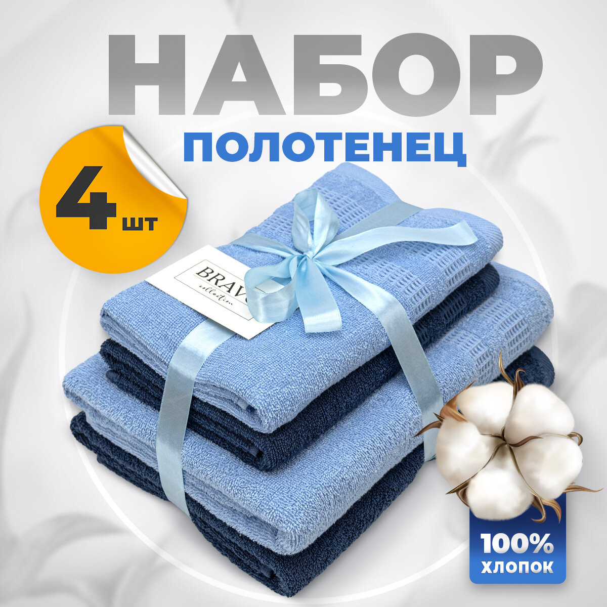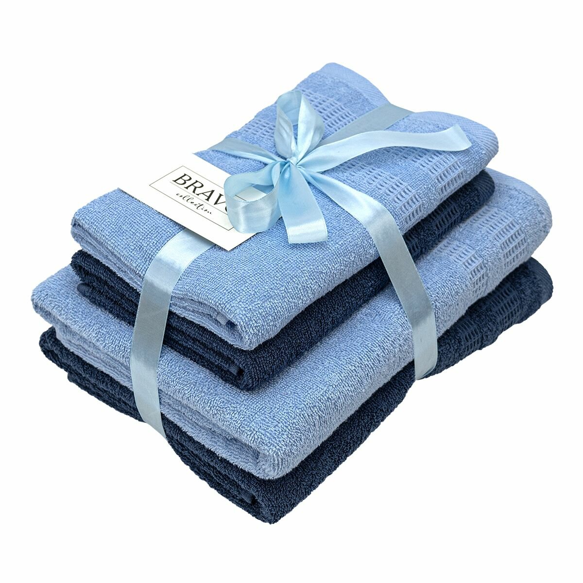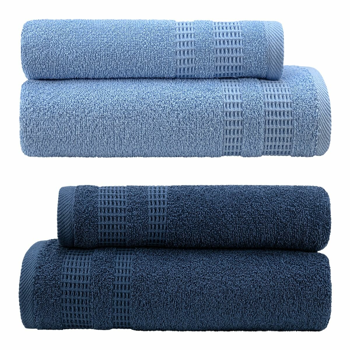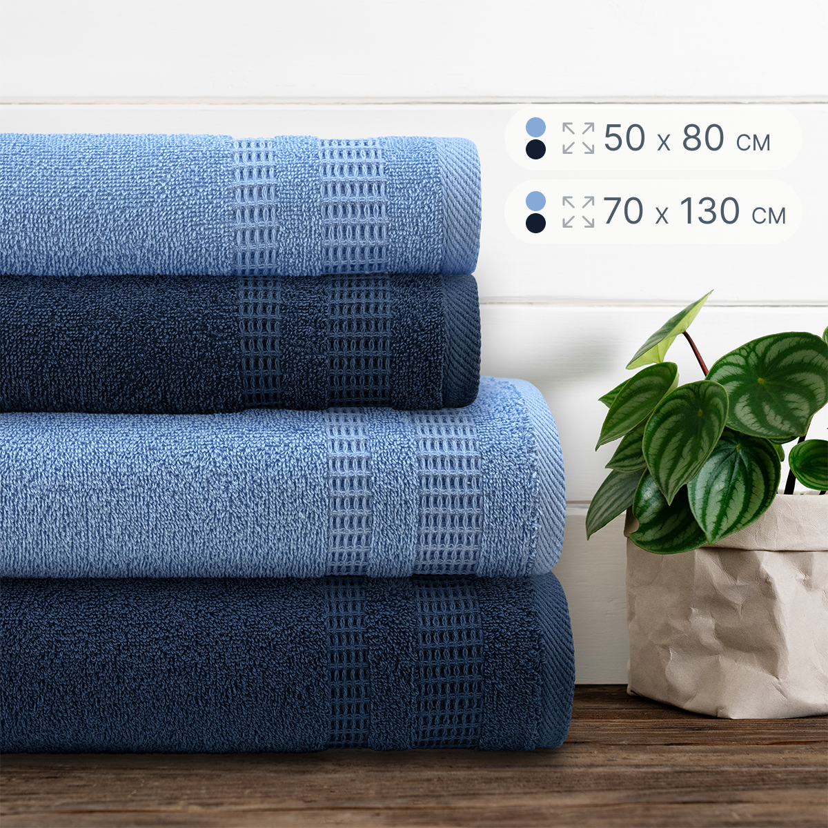 Купить Большой набор махровых полотенец для всей семьи Памир - 4 штуки (2 больших 70*130, 2 средних 50*80) синий/ хлопок / подарок