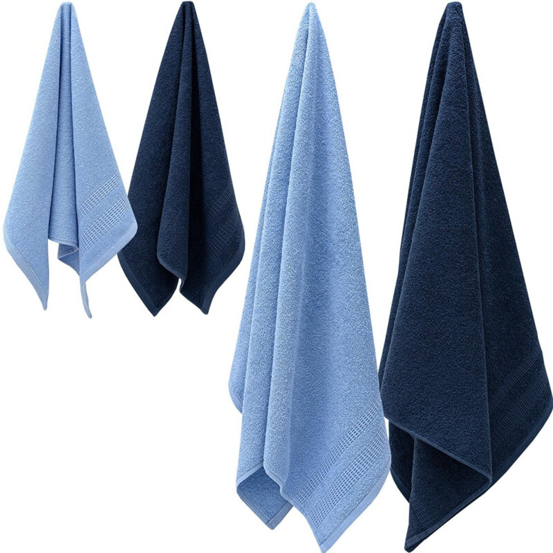СохранитьБольшой набор махровых полотенец для всей семьи Памир - 4 штуки (2 больших 70*130, 2 средних 50*80) синий/ хлопок / подарок интересное: