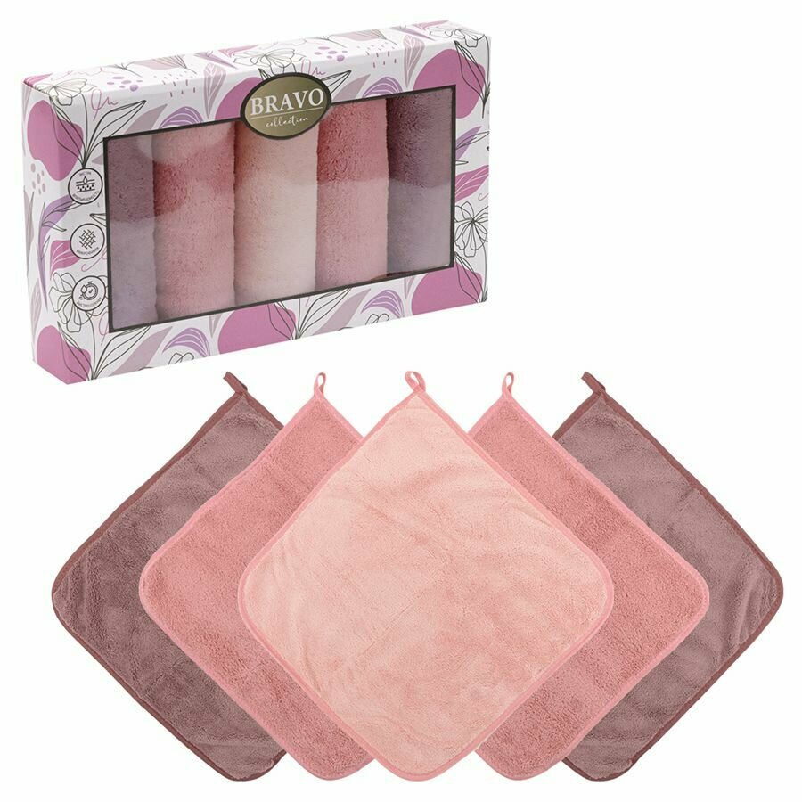 Купить Набор салфеток 5 штук BRAVO Смарт kitchen из микрофибры с петелькой 30*30 брусника, для кухни, мебели, салфетка из микрофибры