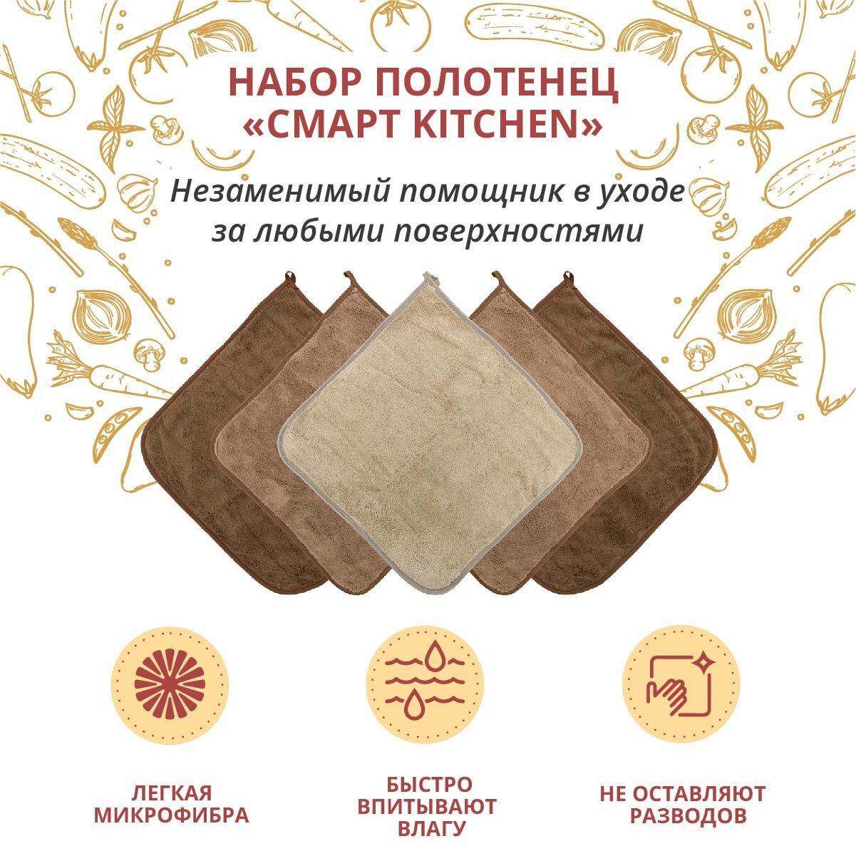 Купить Набор салфеток 5 штук BRAVO Смарт kitchen из микрофибры с петелькой 30*30 бежевый, для кухни, мебели, салфетка из микрофибры