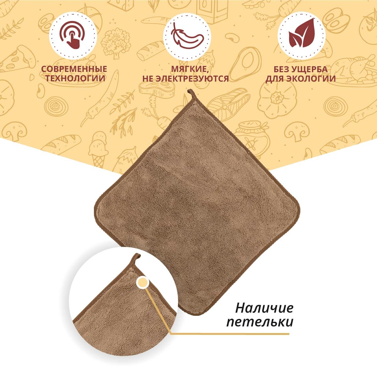 СохранитьНабор салфеток 5 штук BRAVO Смарт kitchen из микрофибры с петелькой 30*30 бежевый, для кухни, мебели, салфетка из микрофибры интересное: