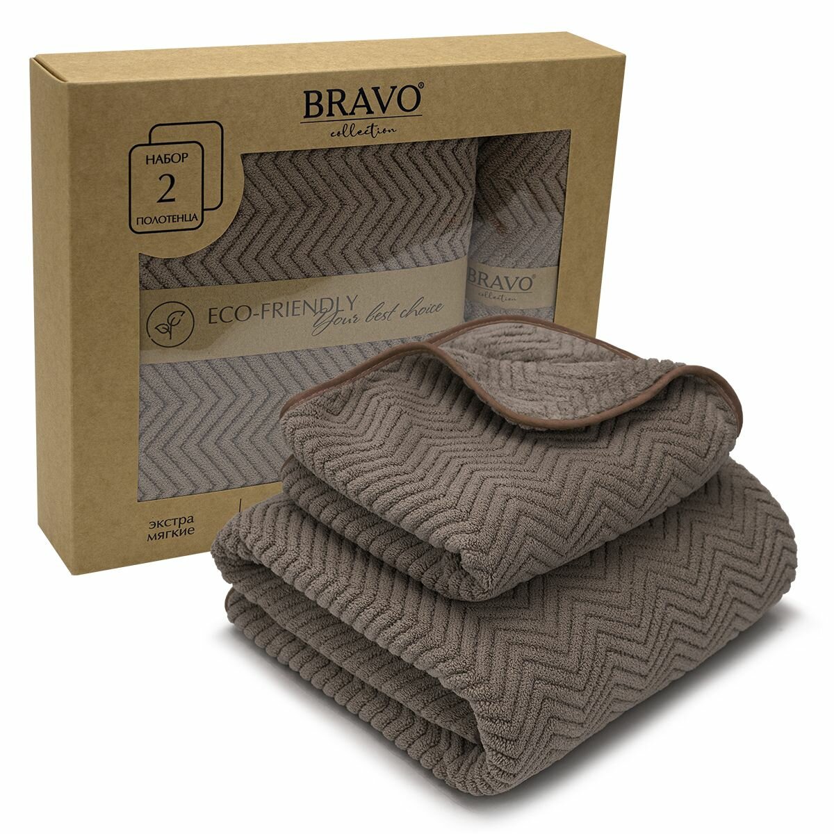 Купить Подарочный набор банных быстросохнущих полотенец Крафт NEW из микрофибры 2 шт 35*75+70*140 см, коричневый