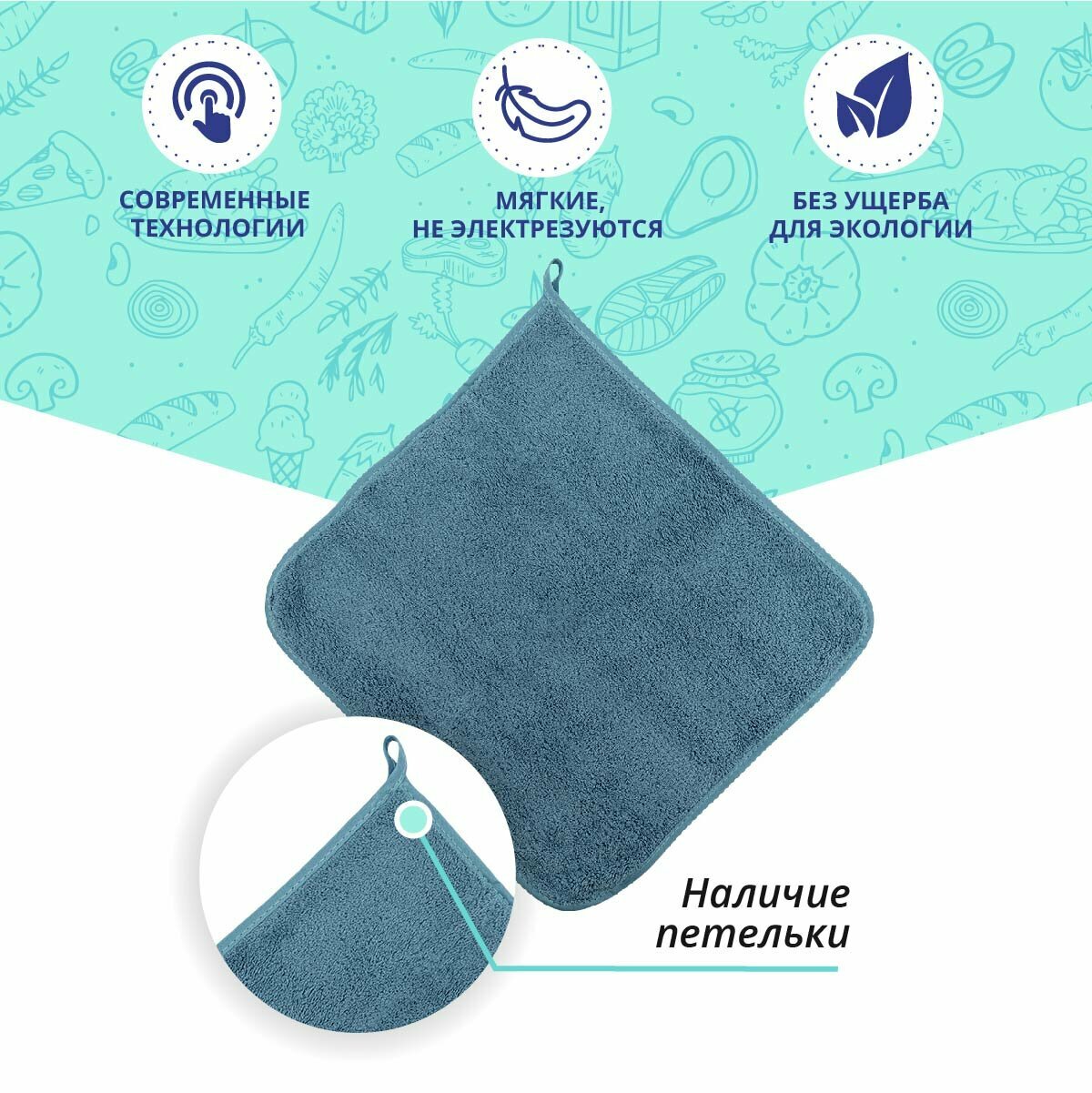СохранитьНабор салфеток 5 штук BRAVO Смарт kitchen из микрофибры с петелькой 30*30 синий, для кухни, мебели, салфетка из микрофибры интересное: