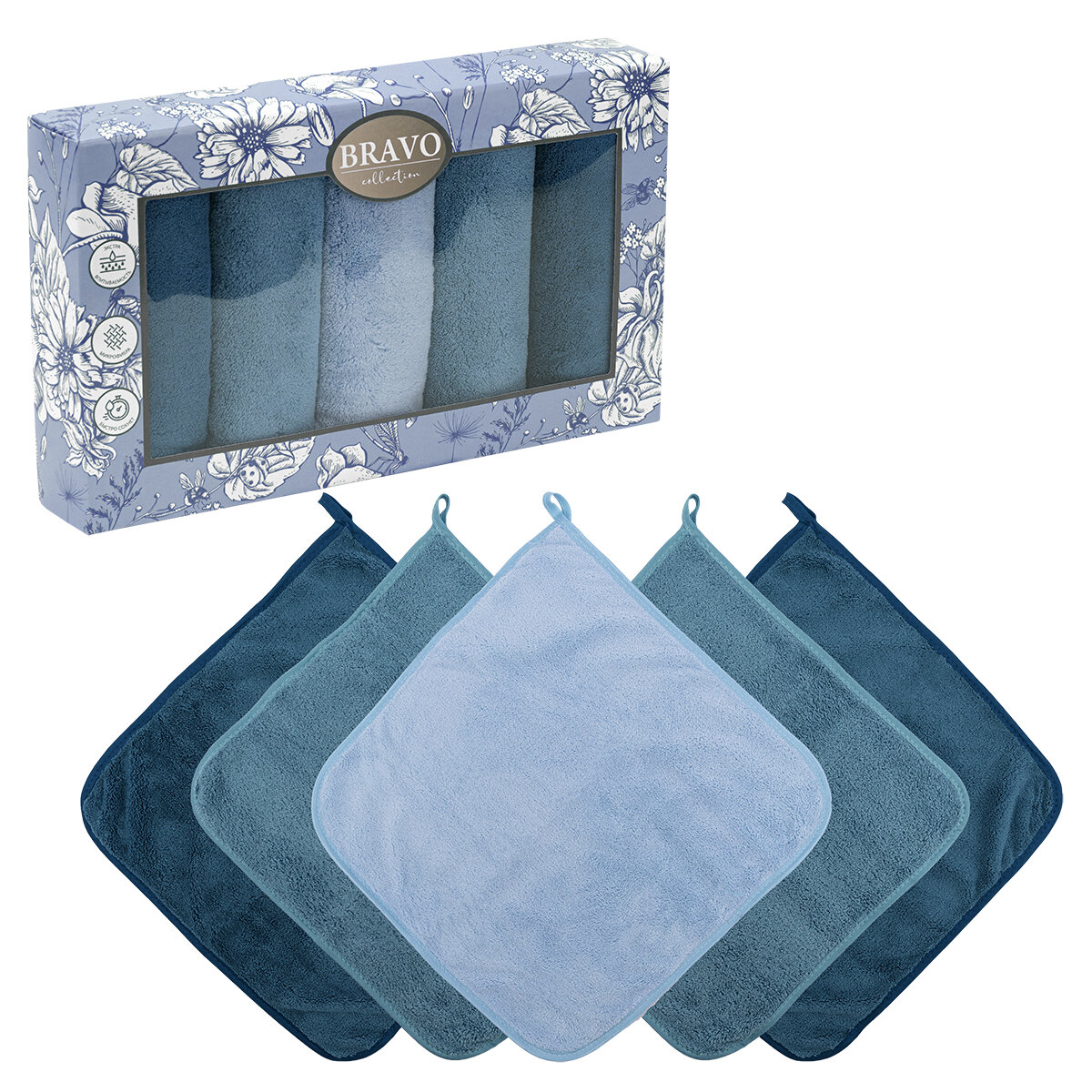 Купить Набор салфеток 5 штук BRAVO Смарт kitchen из микрофибры с петелькой 30*30 синий, для кухни, мебели, салфетка из микрофибры