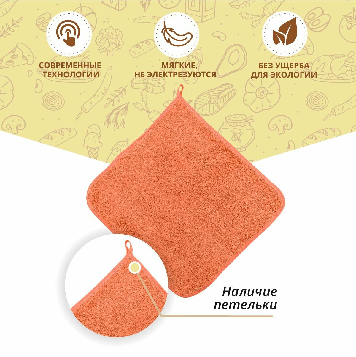Купить Набор салфеток 5 штук BRAVO Смарт kitchen из микрофибры с петелькой 30*30 оранжевый, для кухни, мебели, салфетка из микрофибры