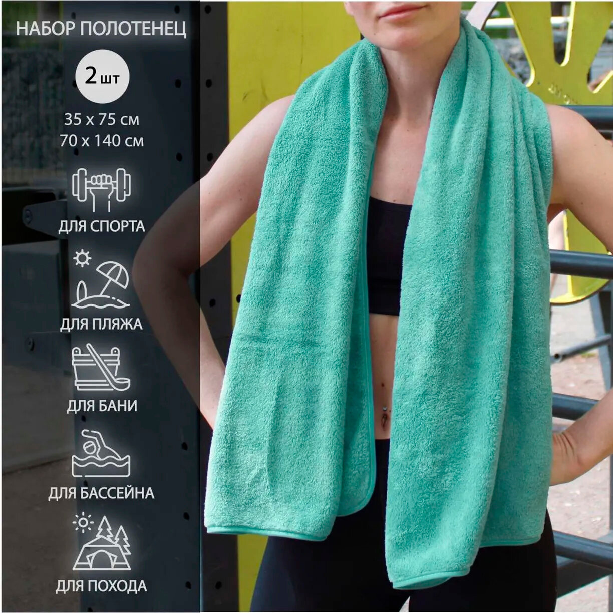 Смарт/Набор махровых полотенец 35*75 + 70*140 мятный/Быстросохнущее пляжное полотенце для Тренировок/спорт/Йога/Фитнес/ Бег/Бассейн/Баня/подарок