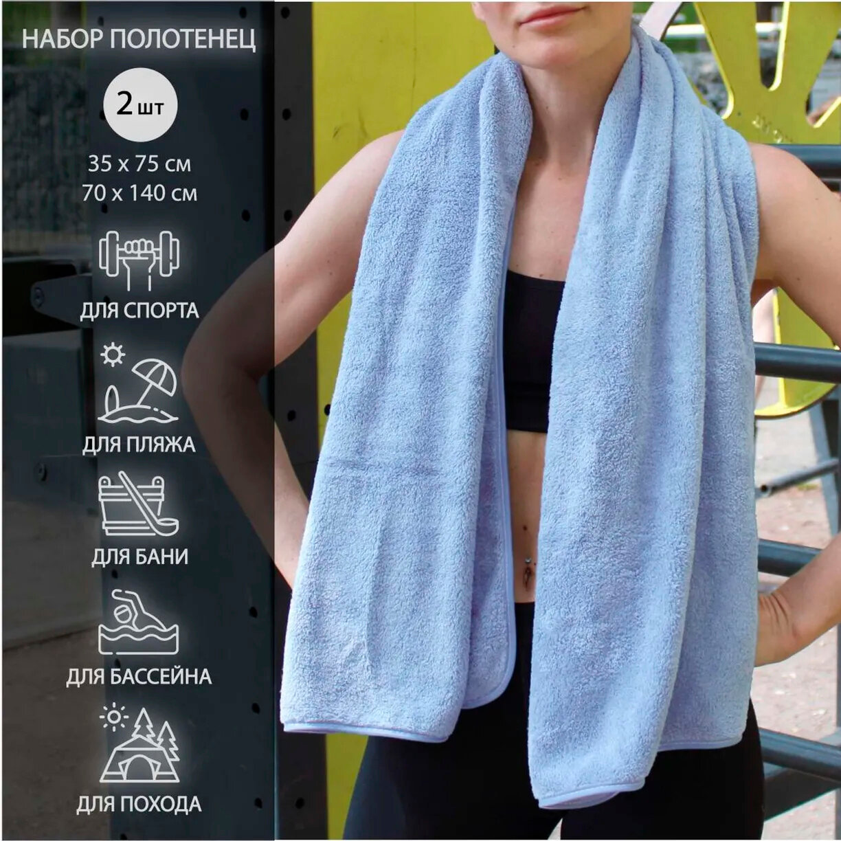 Купить Смарт/Набор махровых полотенец 35*75 + 70*140 голубой/Быстросохнущее пляжное полотенце для Тренировок, спорт, Йога, Фитнес, Бег, Бассейн, Баня, подарок