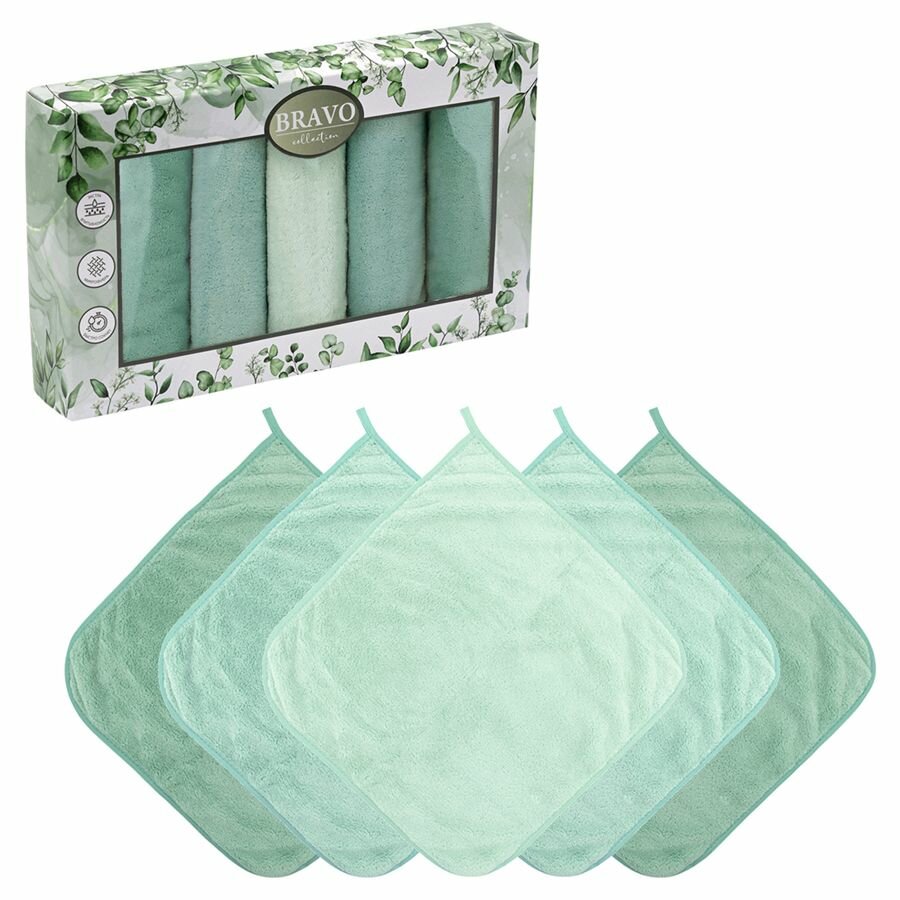 Набор салфеток 5 штук BRAVO Смарт kitchen из микрофибры с петелькой 30*30 зеленый, для кухни, мебели, салфетка из микрофибры