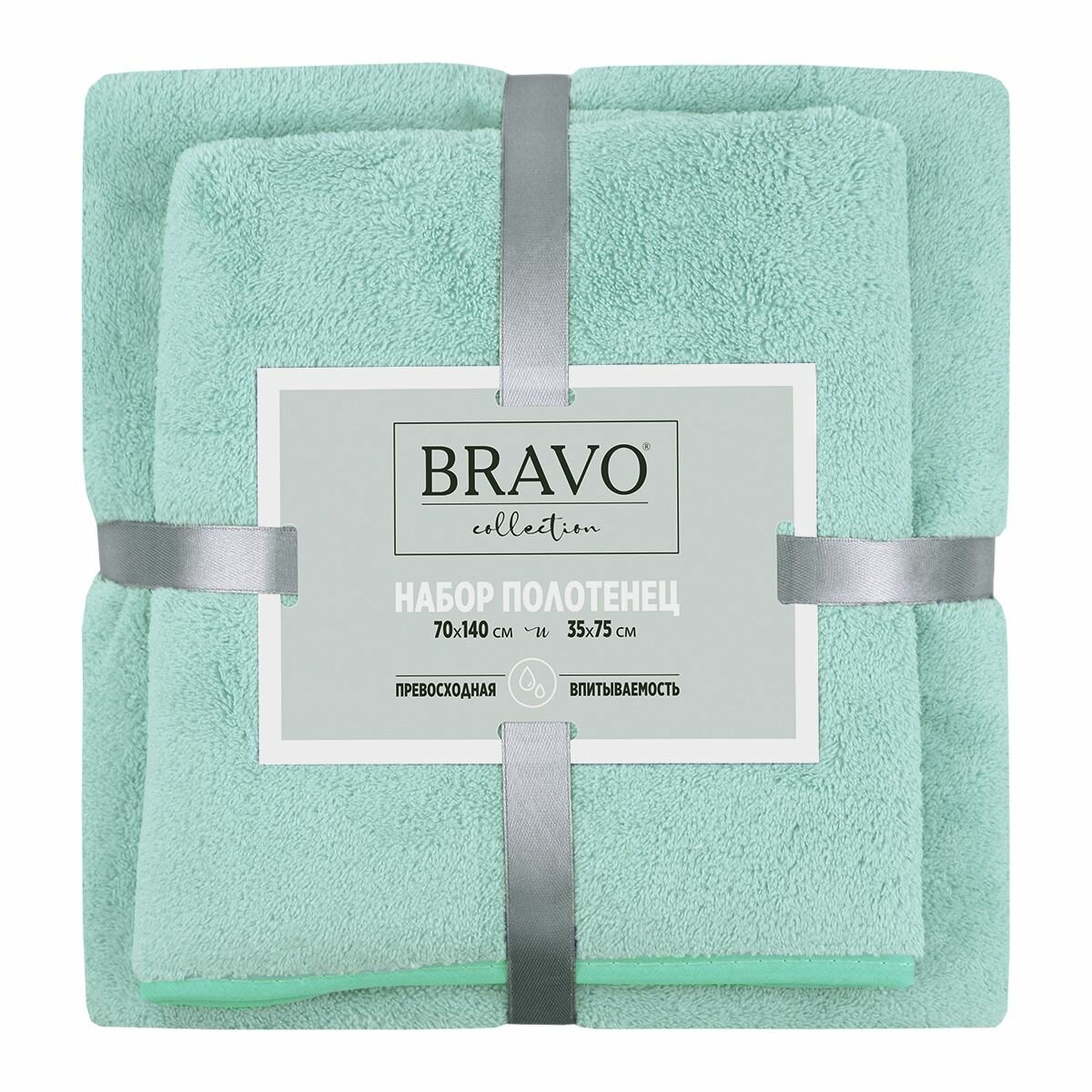 Подарочный набор банных быстросохнущих полотенец Крафт NEW из микрофибры 2 шт 35*75+70*140 см, мятный