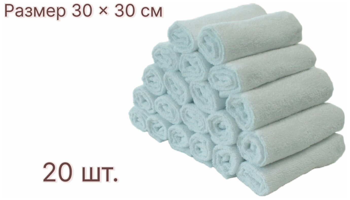 Купить Салфетка Махровая 30х30 (20 шт.) Белая из 100% Хлопка, маленькое полотенце для рук/лица, посуды, сервировки стола