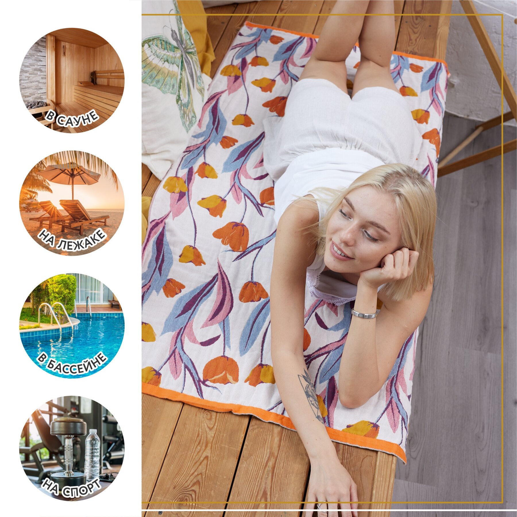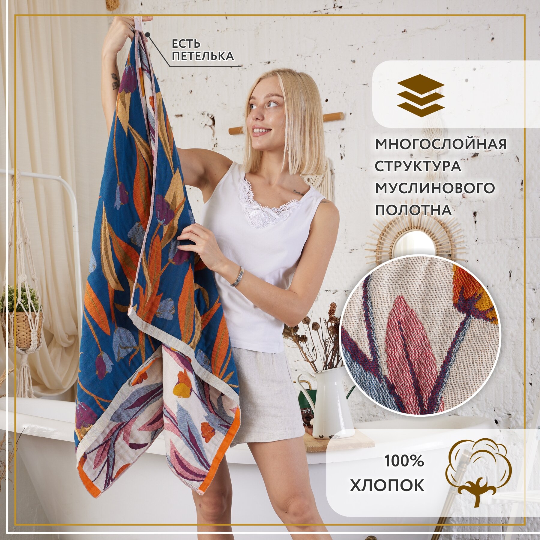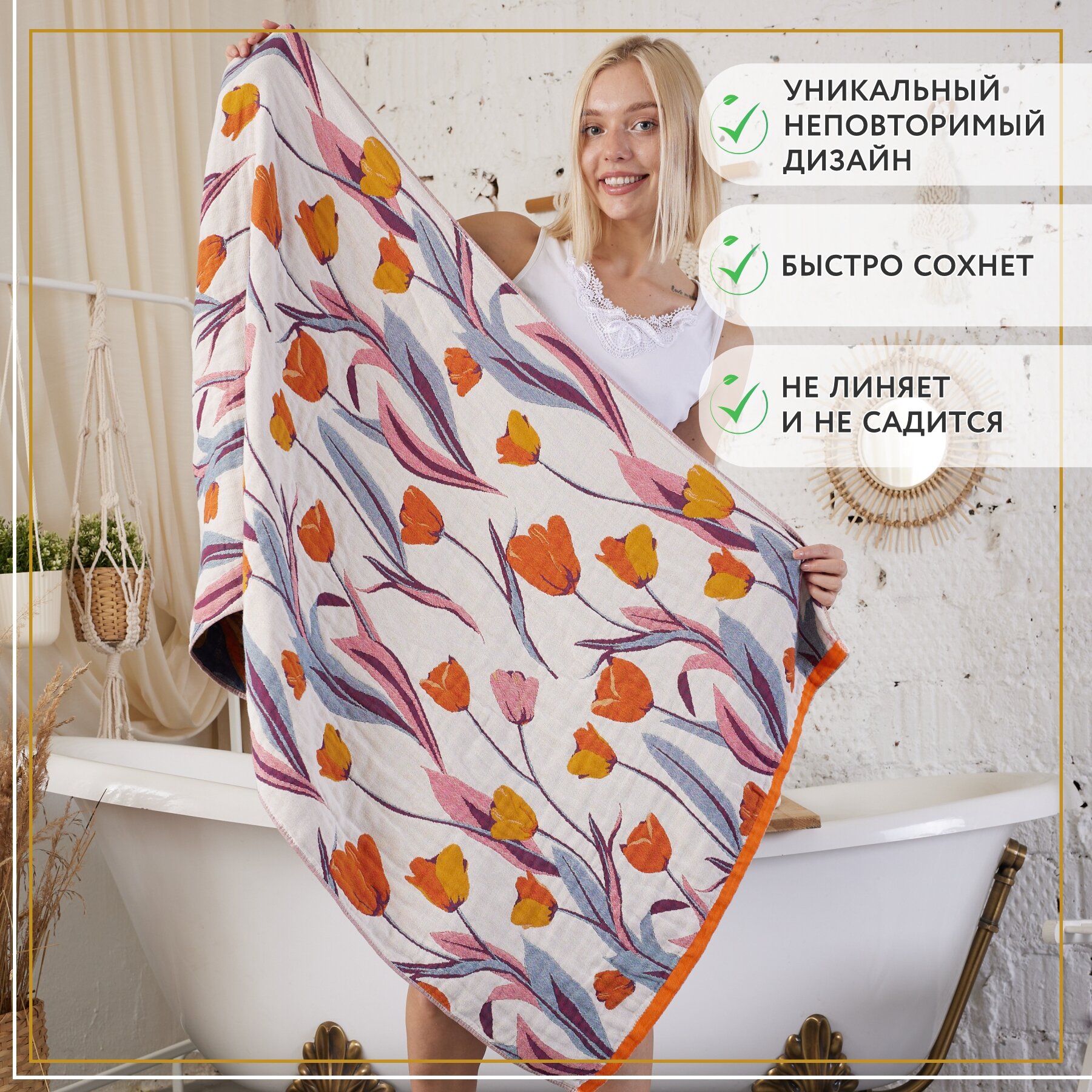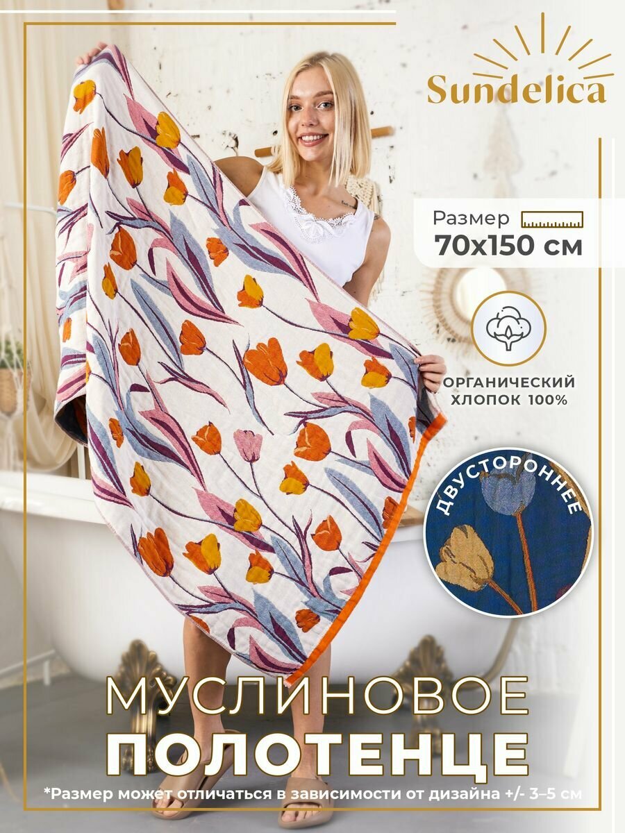 Полотенце Sundelica "Тюльпаны" 70x140, муслин, хлопок интересное: