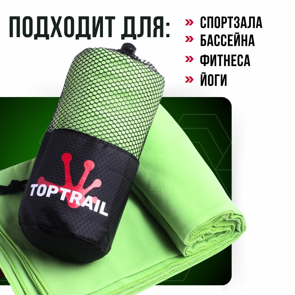 СохранитьПолотенце спортивное из микрофибры TOPTRAIL, 80 х 130, зеленое, для бассейна / пляжное / банное интересное: