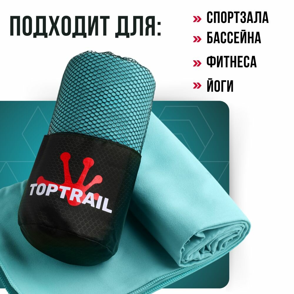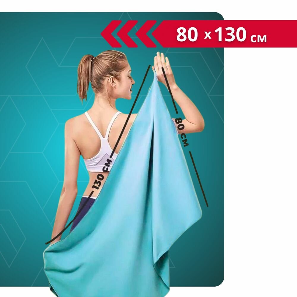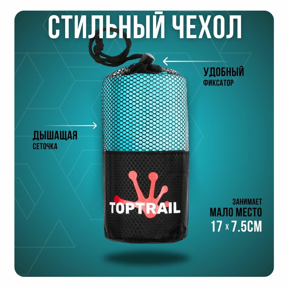 СохранитьПолотенце спортивное из микрофибры TOPTRAIL, 80 х 130, голубое, для бассейна / пляжное / банное интересное: