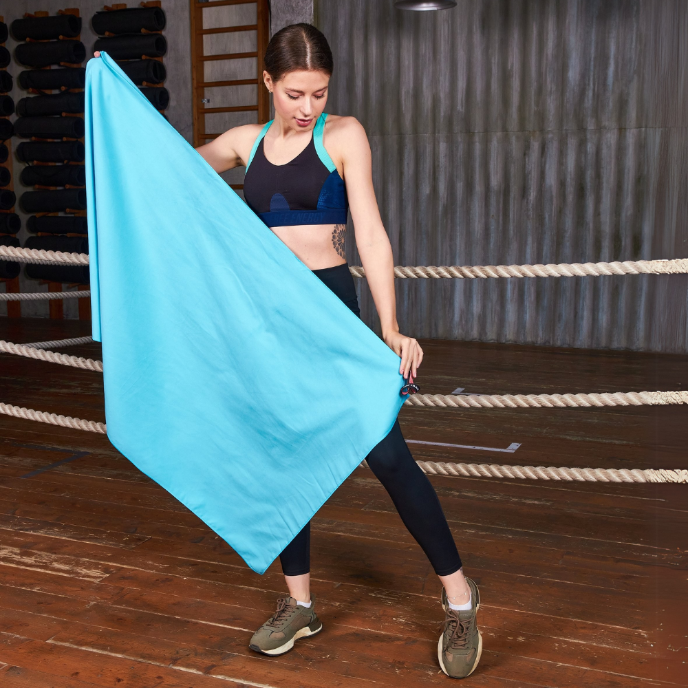 Купить Полотенце спортивное из микрофибры TOPTRAIL, 80 х 130, голубое, для бассейна / пляжное / банное