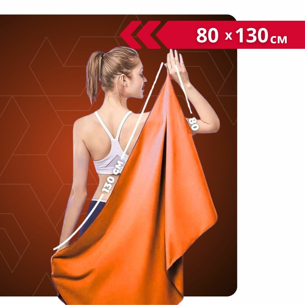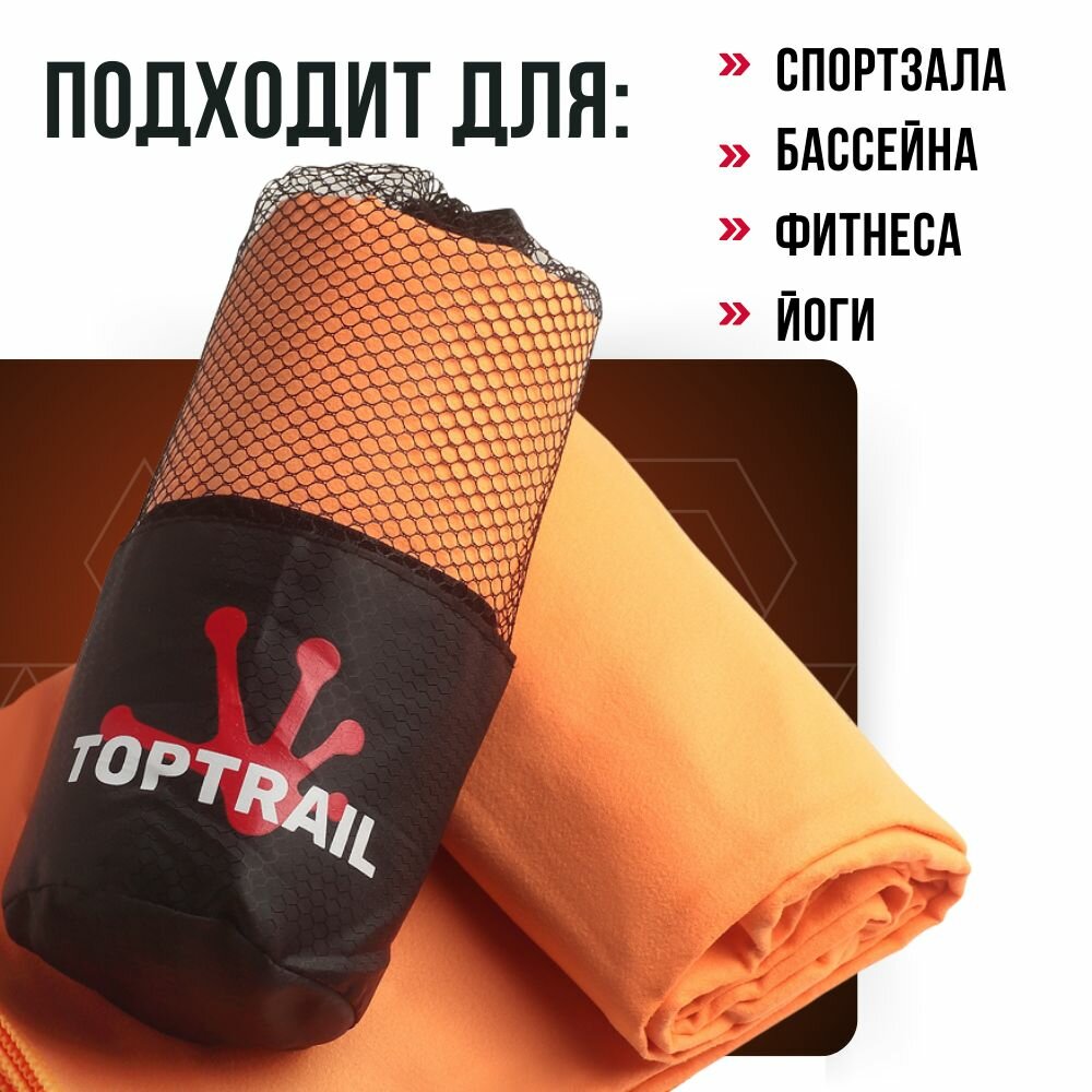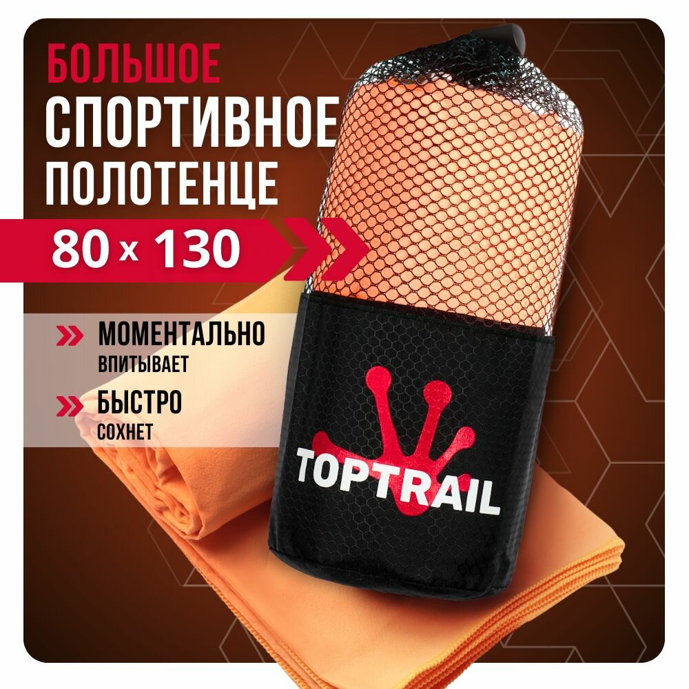 Купить Полотенце спортивное из микрофибры TOPTRAIL, 80 х 130, оранжевое, для бассейна / пляжное / банное