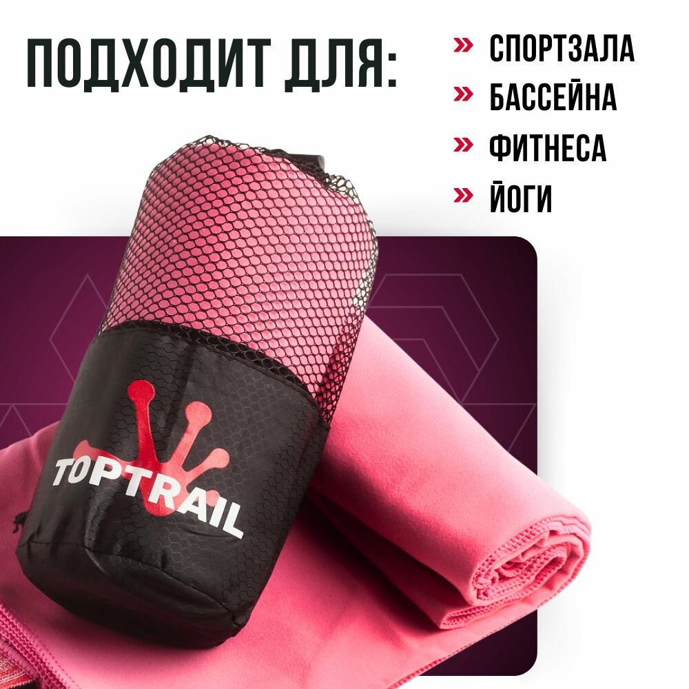 СохранитьПолотенце спортивное из микрофибры TOPTRAIL, 80 х 130, розовое, для бассейна / пляжное / банное интересное: