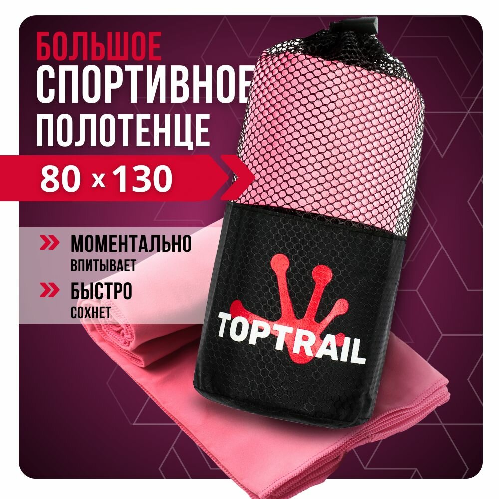 Купить Полотенце спортивное из микрофибры TOPTRAIL, 80 х 130, розовое, для бассейна / пляжное / банное