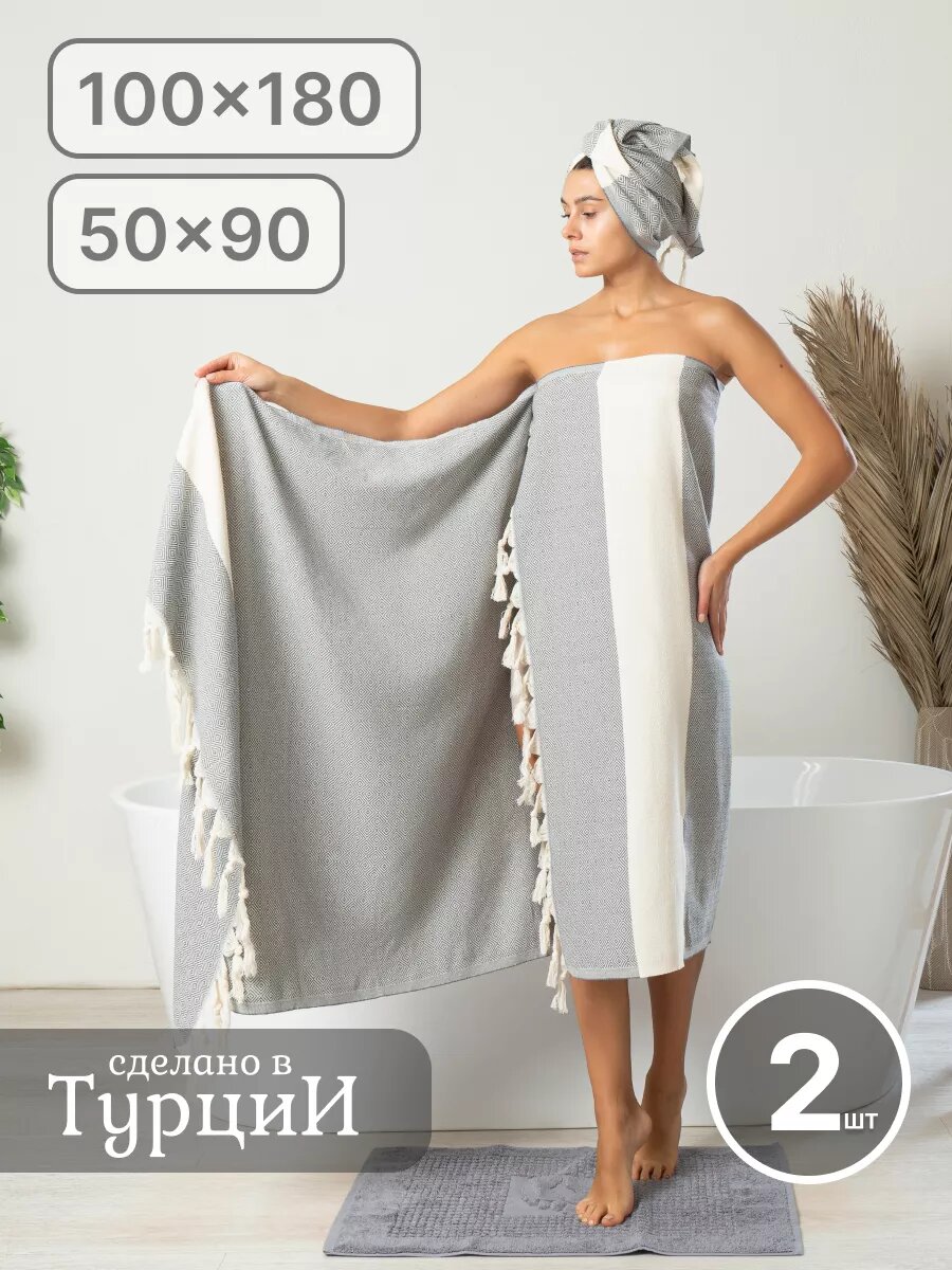 Купить Большое полотенце набор подарочный 2 шт Gri
