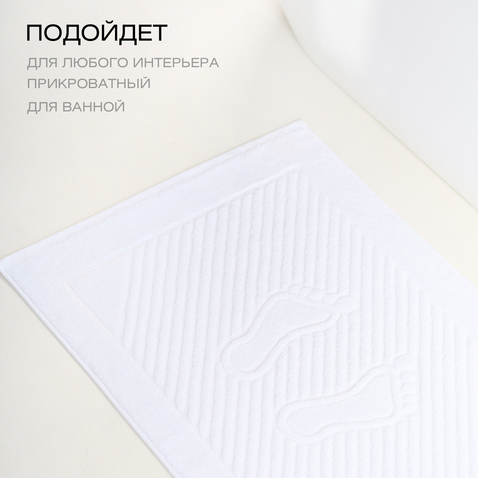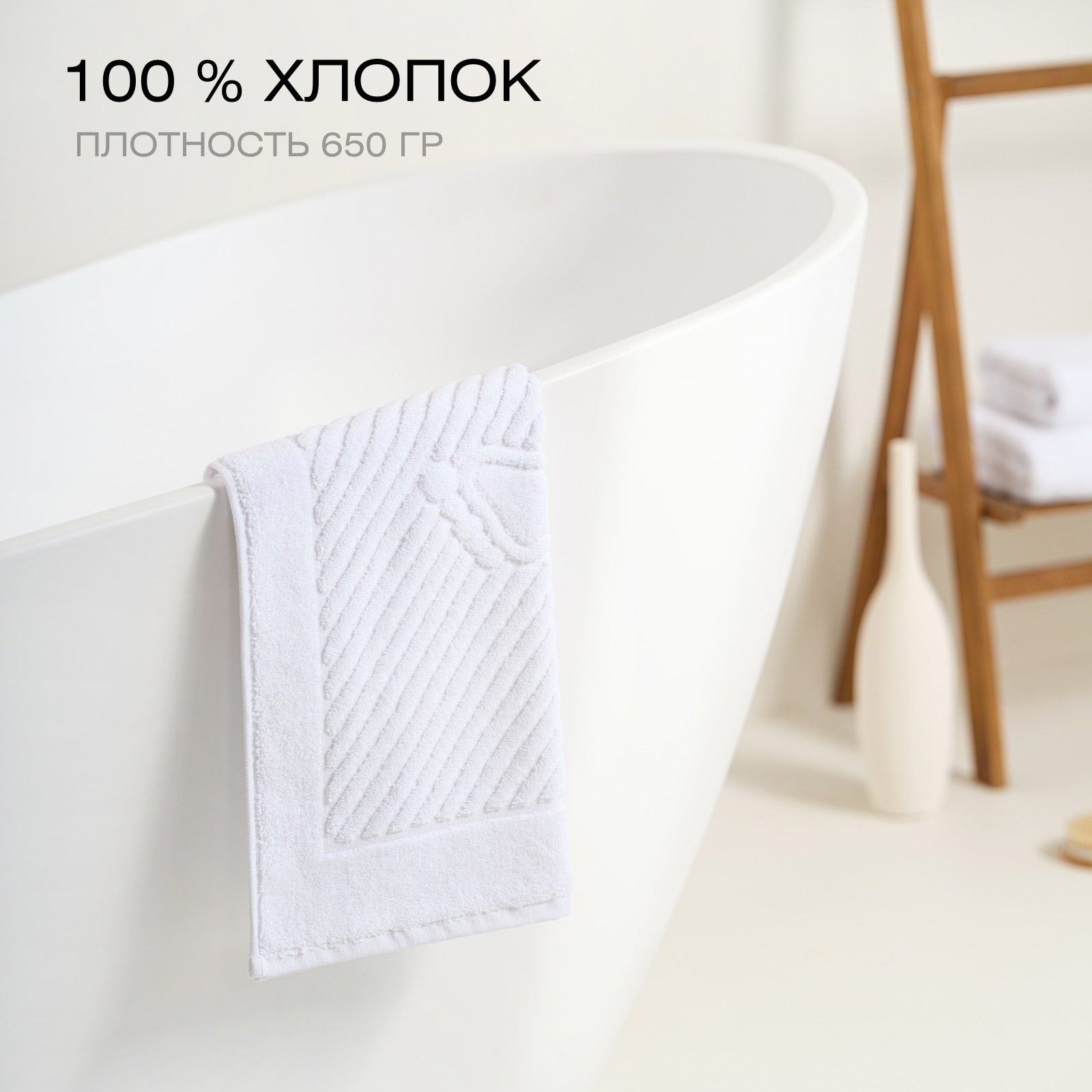 Полотенце коврик для ног махровый 50x70 см белый полоса интересное: