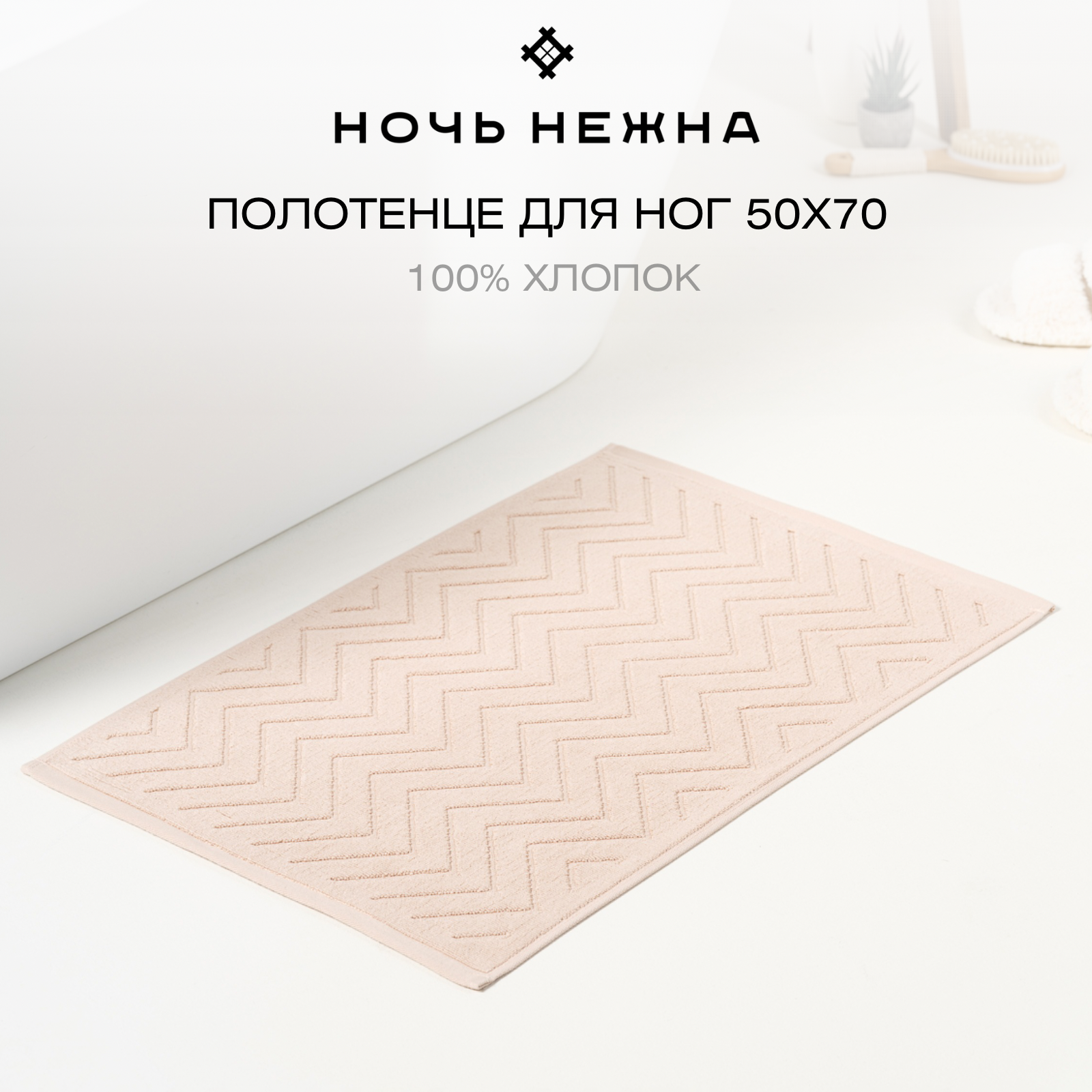 Купить Полотенце коврик для ног махровый 50x70 см бежевый зигзаг