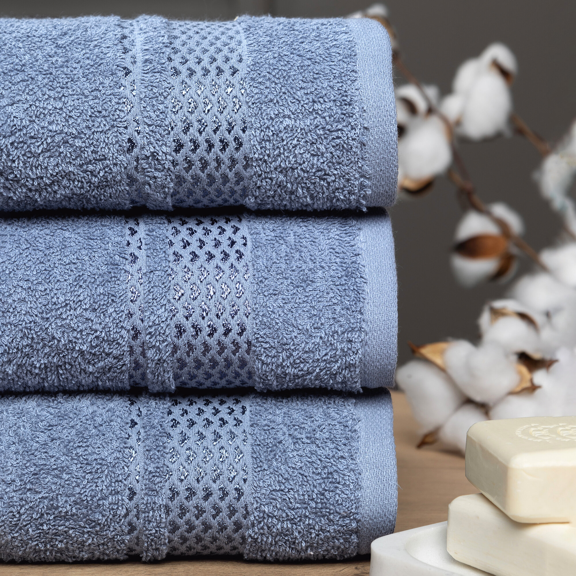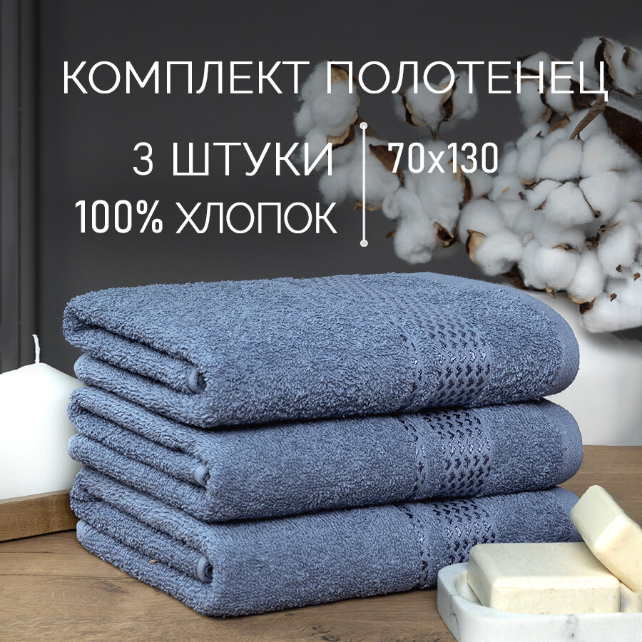 Набор полотенец махровых / Комплект махровых полотенец 3 шт 70х130 Энигма серо синий интересное: