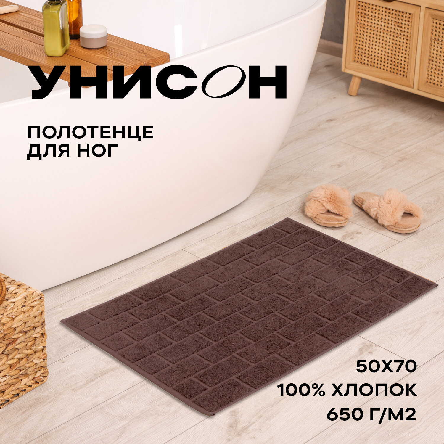 СохранитьМахровое полотенце для ног 50х70 / коврик для ног "Унисон" Saluzzo шоколадный интересное: