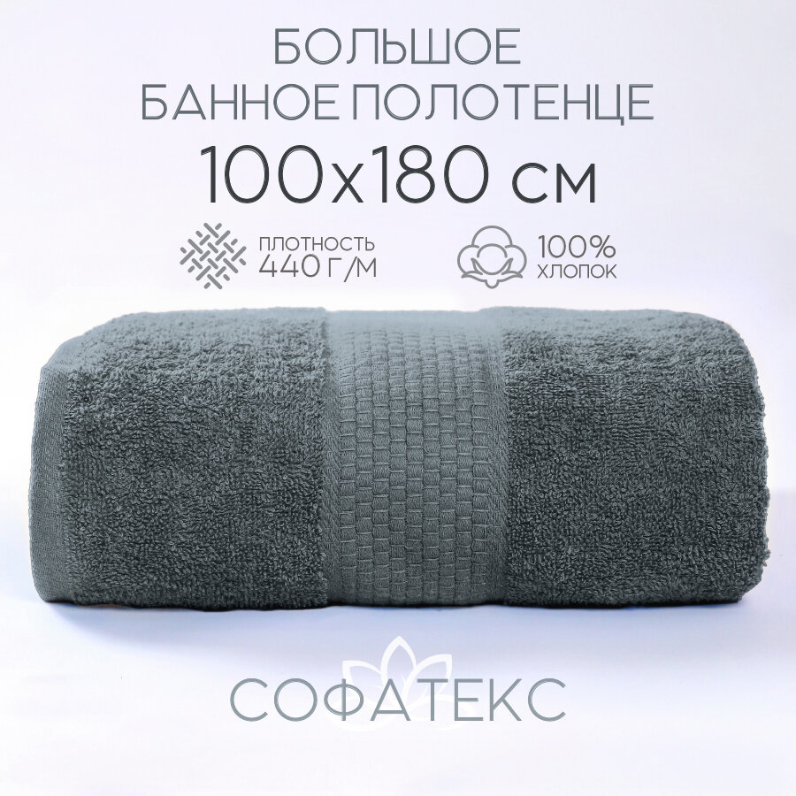 Купить Полотенце банное махровое 100% хлопок Софатекс 100х180 для ванны и душа, цвет серый