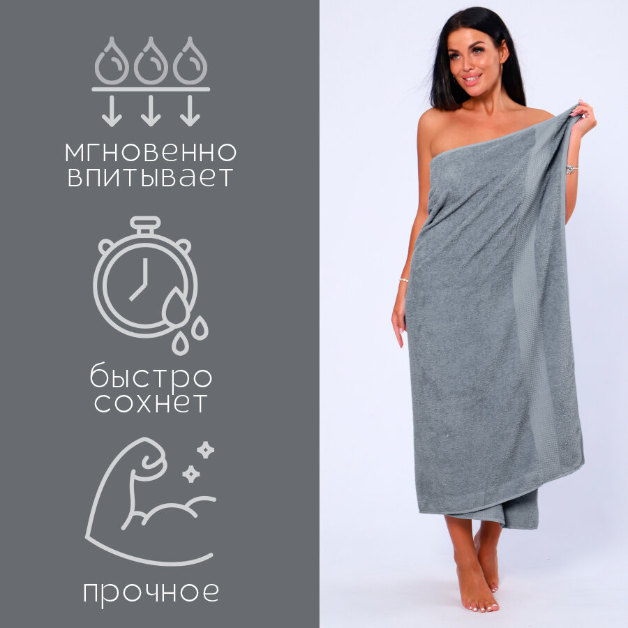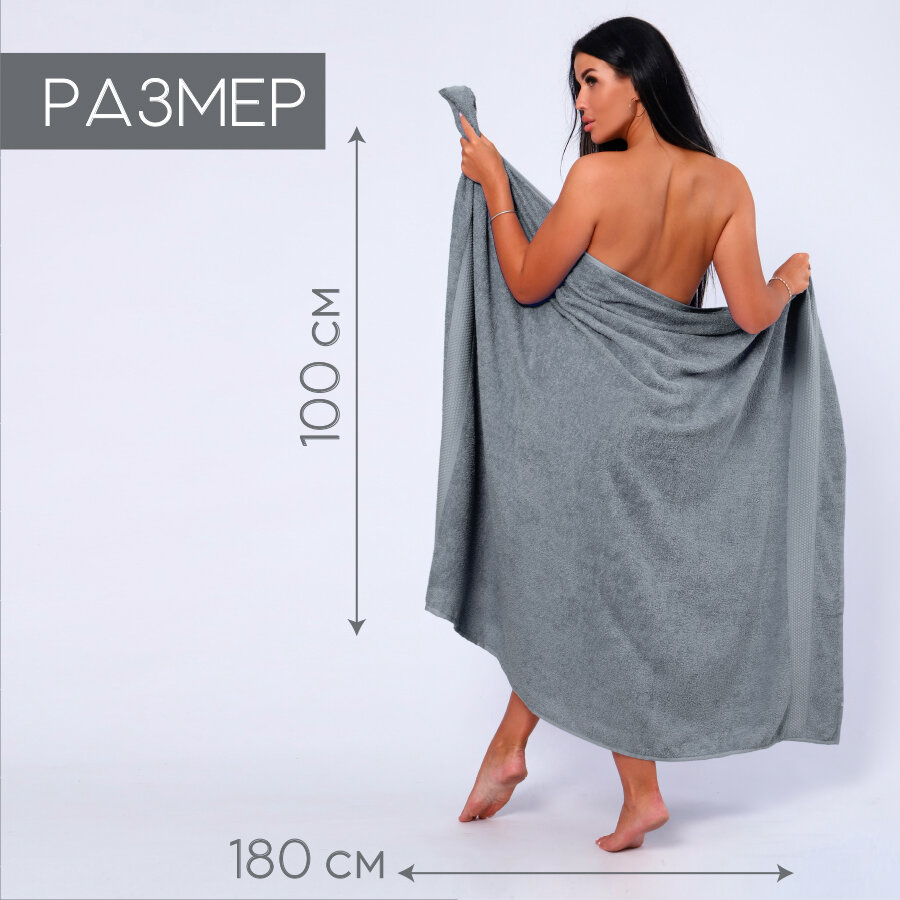 СохранитьПолотенце банное махровое 100% хлопок Софатекс 100х180 для ванны и душа, цвет серый интересное:
