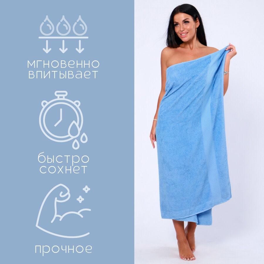 СохранитьПолотенце банное махровое 100% хлопок Софатекс 100х180 для ванны и душа, цвет голубой интересное: