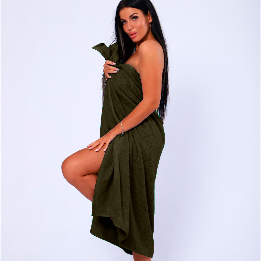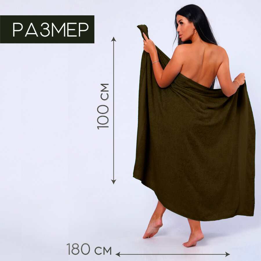 СохранитьПолотенце банное махровое 100% хлопок Софатекс 100х180 для ванны и душа, цвет хаки интересное: