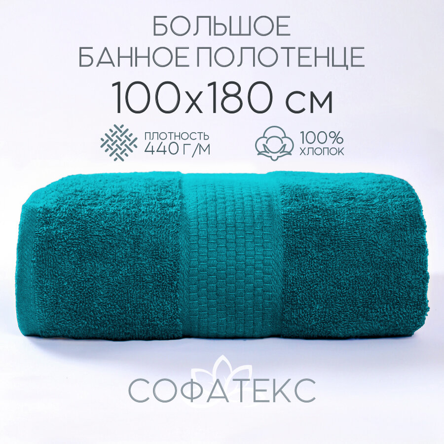 Полотенце банное махровое 100% хлопок Софатекс 100х180 для ванны и душа, цвет бирюзовый