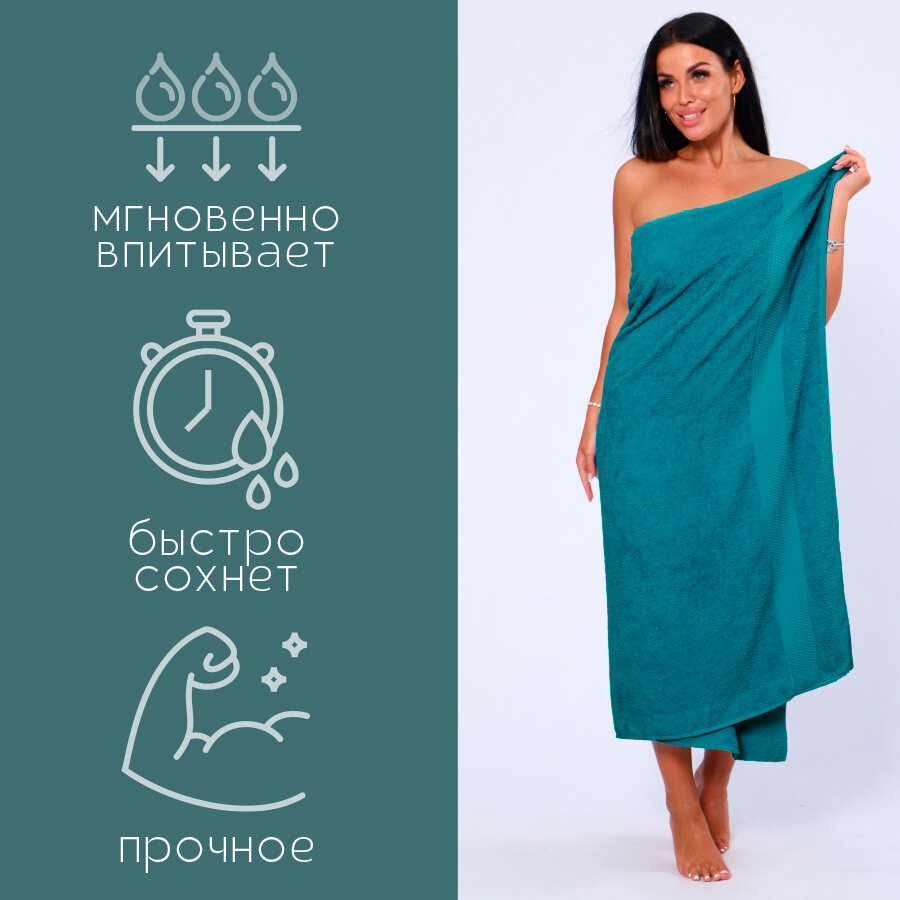 СохранитьПолотенце банное махровое 100% хлопок Софатекс 100х180 для ванны и душа, цвет зеленый интересное: