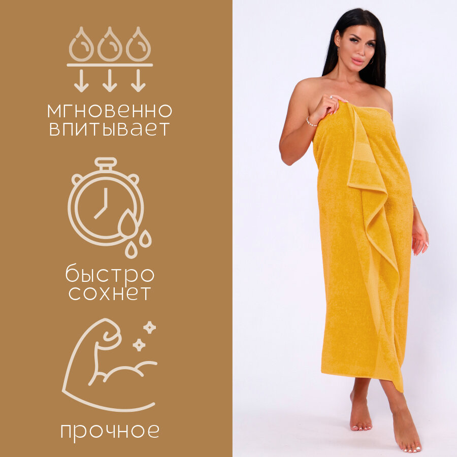 СохранитьПолотенце банное махровое 100% хлопок Софатекс 100х180 для ванны и душа, цвет желтый интересное: