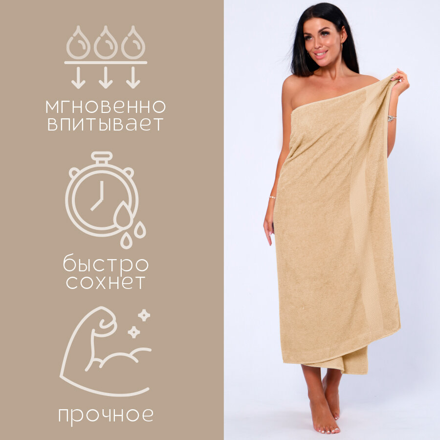 СохранитьПолотенце банное махровое 100% хлопок Софатекс 100х180 для ванны и душа, цвет бежевый интересное: