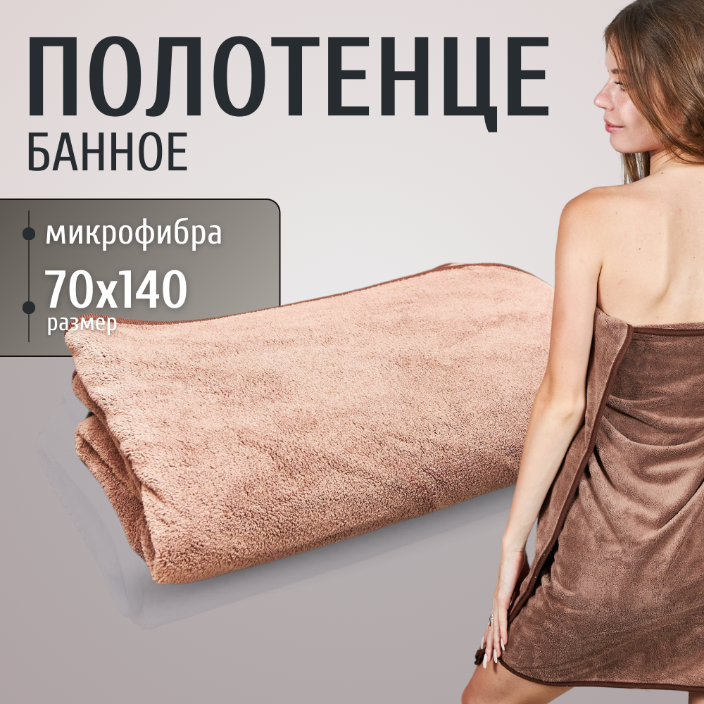 Купить Банное полотенце из микрофибры большое 70х140 коричневое