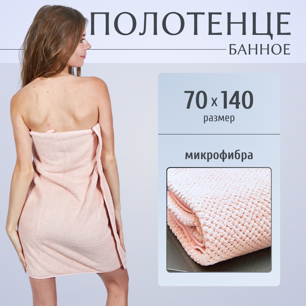 Полотенце банное из микрофибры для ванной 140х70 см розовое