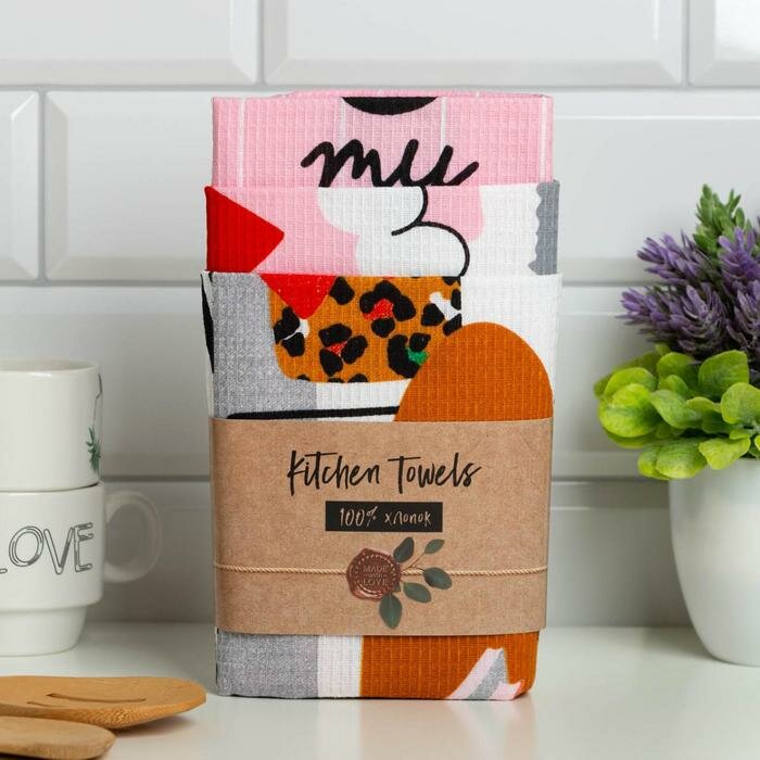 Полотенце кухонное 3 штуки, 35х60, Доляна "Organic food" 100% хлопок