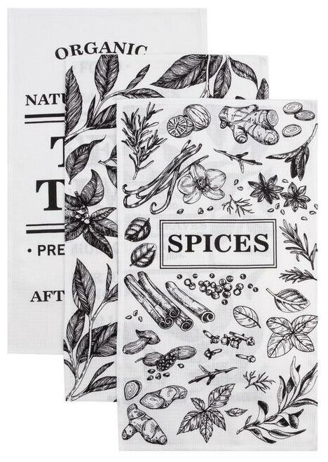 Подарочный набор кухонных полотенец Доляна Organic food 35х60см-3шт, 100% хлопок