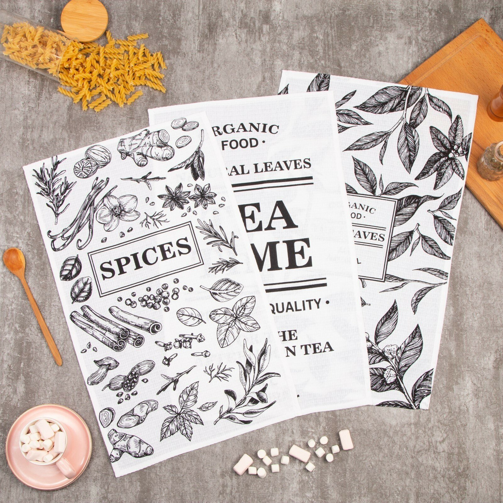 Полотенце кухонное 3 штуки, 35х60, Доляна "Organic food" 100% хлопок