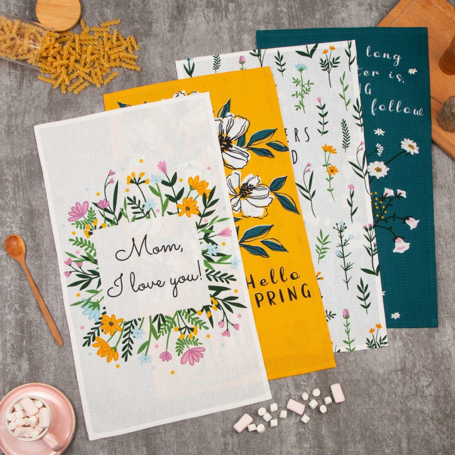 Купить Набор кухонных полотенец Доляна Hello spring 35х60 см -4 шт, 100% хлопок, вафля 160 г/м2