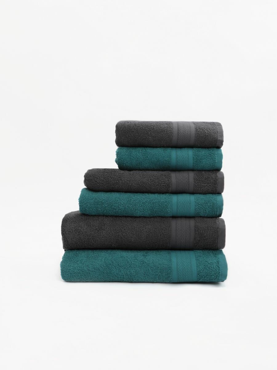 Купить Антрацит + морская волна набор № 1301 махровых полотенец 6 шт (30*60 2 шт, 50х80 2 шт, 70*130 2 шт)
