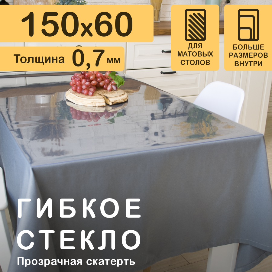 СохранитьПрозрачная скатерть на стол (гибкое/мягкое стекло) CrystalDesk. Толщина 0.7 мм. ПВХ скатерть. 60х150 см. Прозрачная. интересное: