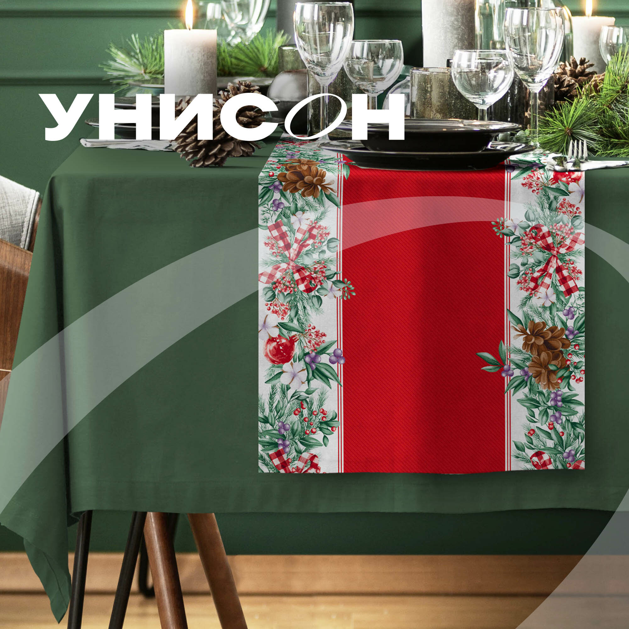 Комплект скатерть 145х180 + дорожка 50х180 "Унисон" рис 33280-3/33276-1 Elegant poinsettia