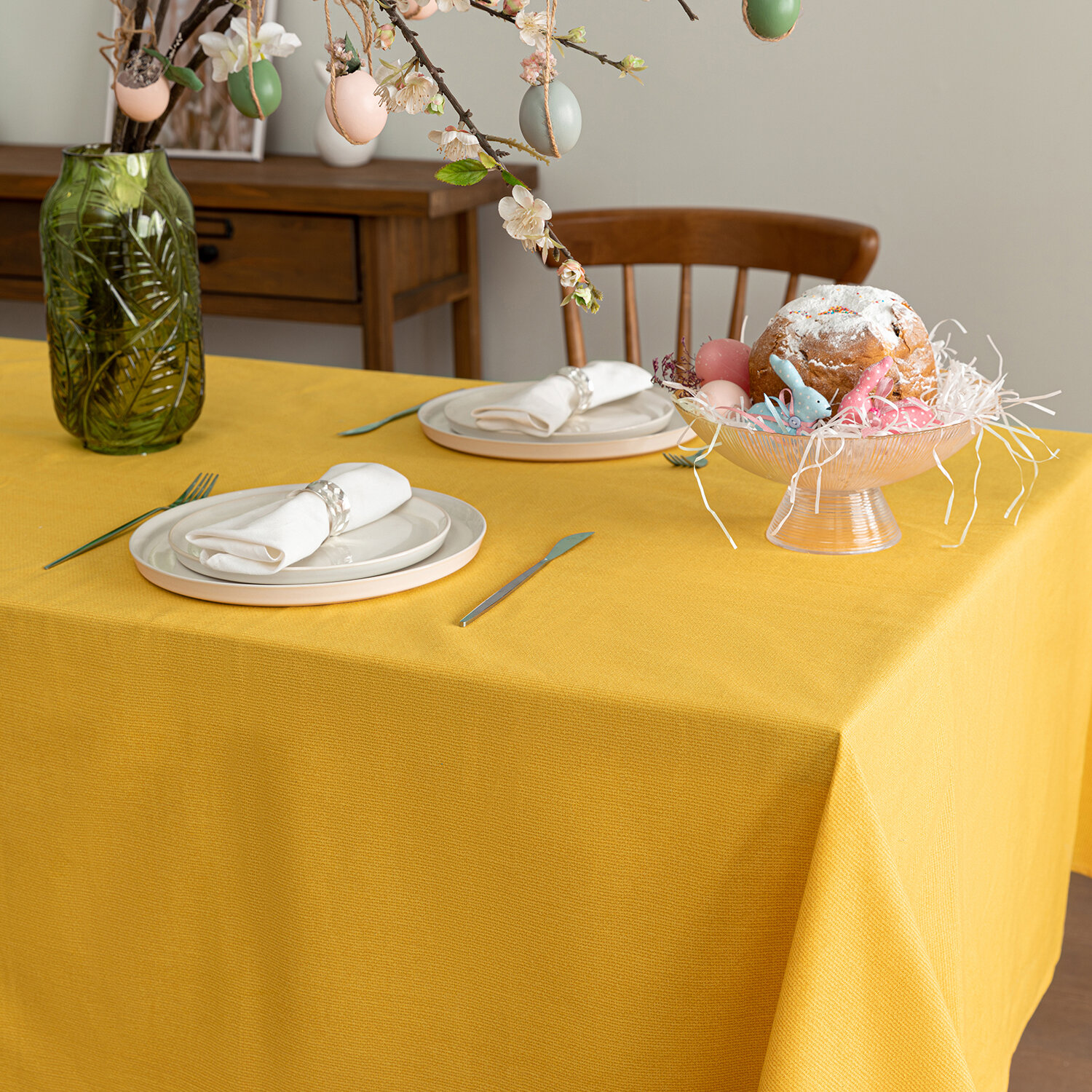 Купить Скатерть рогожка 145х145 "Унисон" Basic желтый