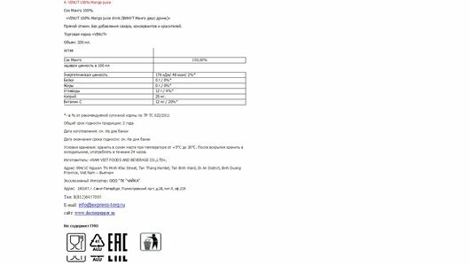 Напиток VINUT со вкусом манго 330 мл интересное: