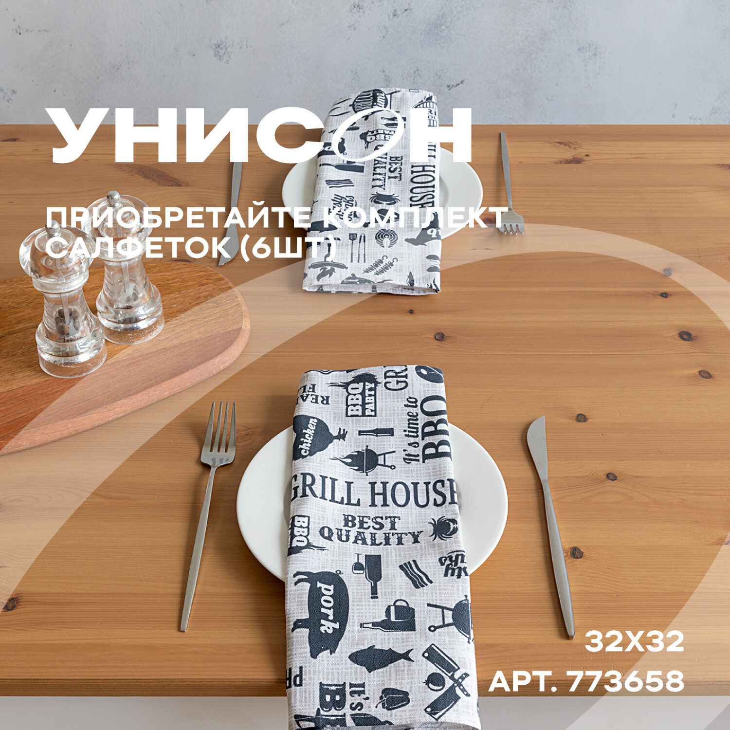Салфетки на стол сервировочные 32х32 (6 шт) / набор сервировочных салфеток из хлопка "Унисон" рис 33014-1 Сell